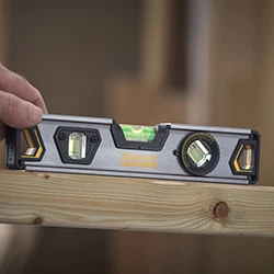 - Niveau à bulle torpille en forme de boîte avec deux fioles fixes et une fiole rotative à 360° pour une mesure flexible